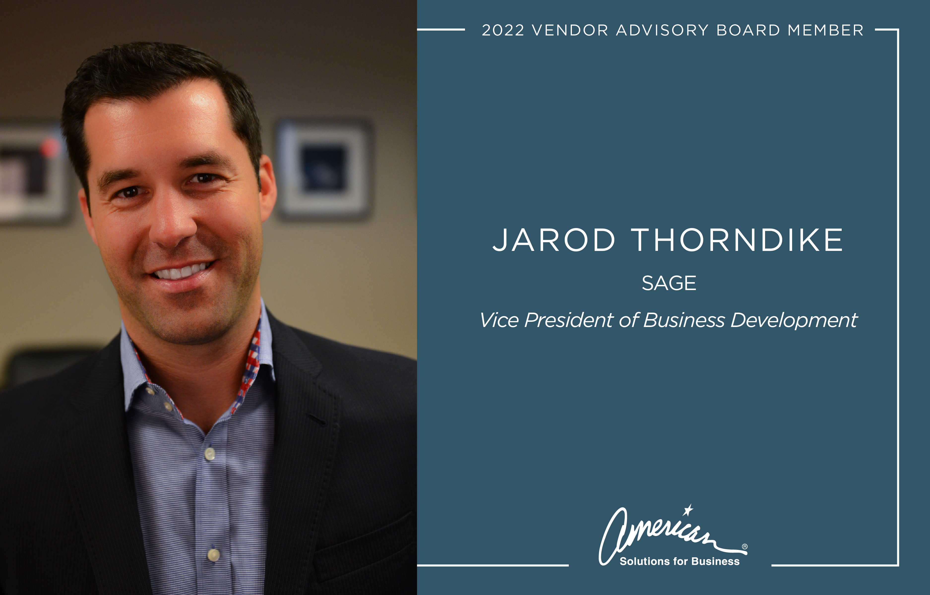 “I’m looking forward to serving on the ASB Advisory Board to collectively share ideas, collaborate with other industry peers, and hopefully add additional value to the ASB organization by leveraging my 17+ years of industry experience.” -Jarod Thorndike