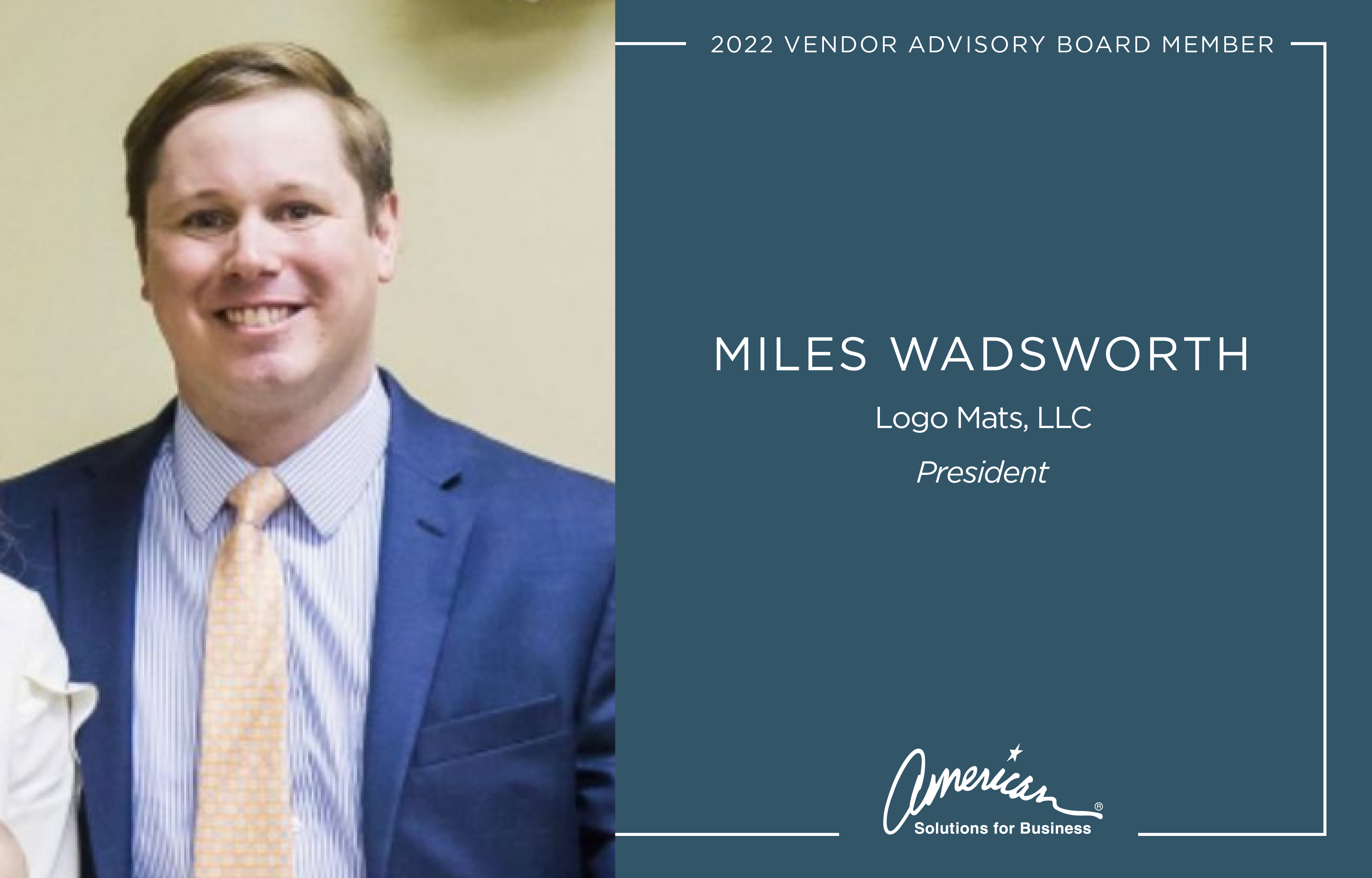 “I am looking forward to serving again on the board to educate new members on the progress that took place over the past two years. I believe we can continue to expand on that progress as a board. I know that working together will only create stronger partnerships between suppliers and American Solutions for Business.” -Miles Wadsworth