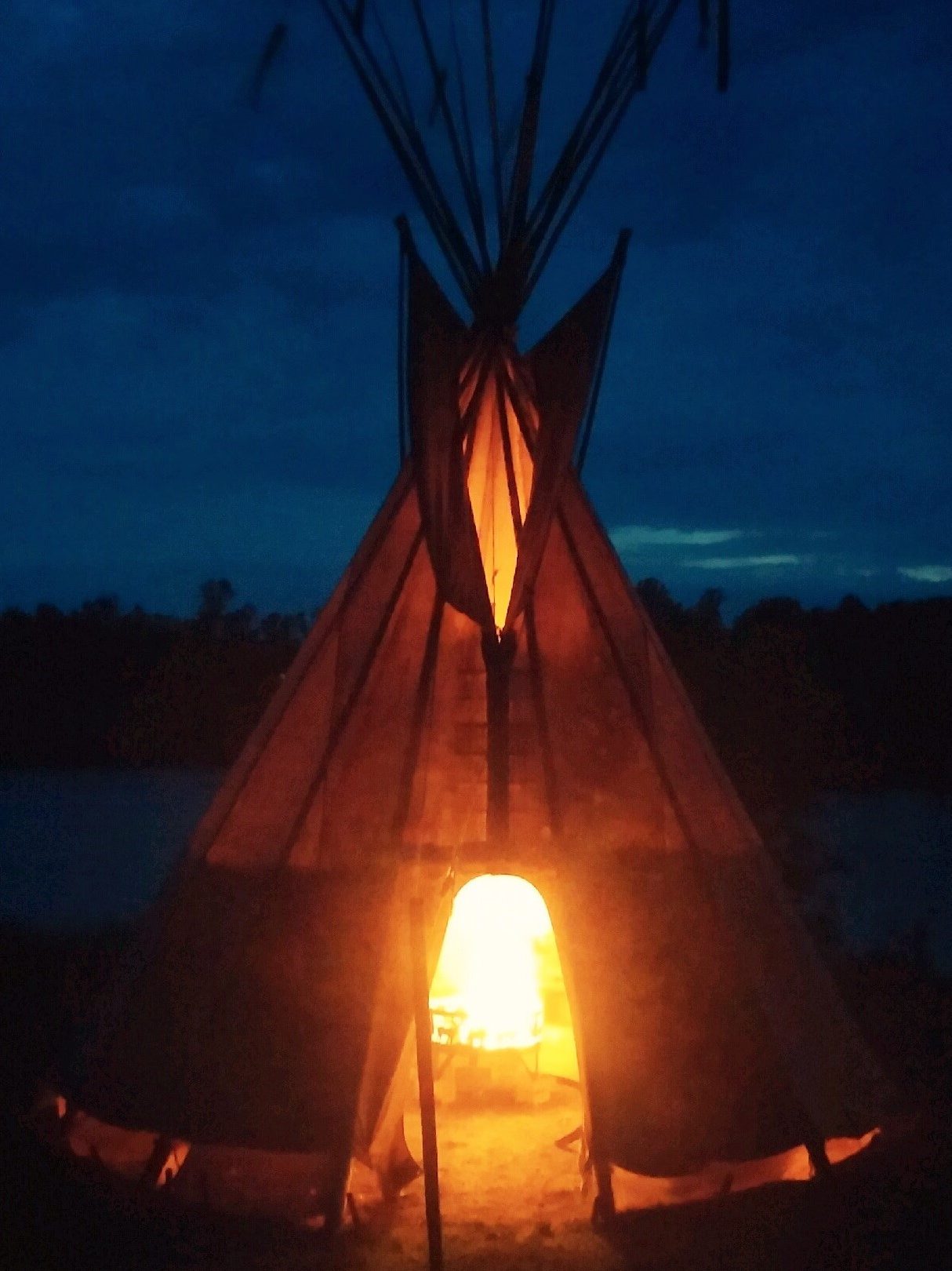 Shannon: We live on the river just out of Chippewa Falls and we have a teepee. My husband’s uncles got into the rendezvous era and wanted to get a teepee and put it on our land. It’s honestly a landmark at this point. We have fires in it all the time. My husband cuts and peels the trees by hand to put the teepee together.