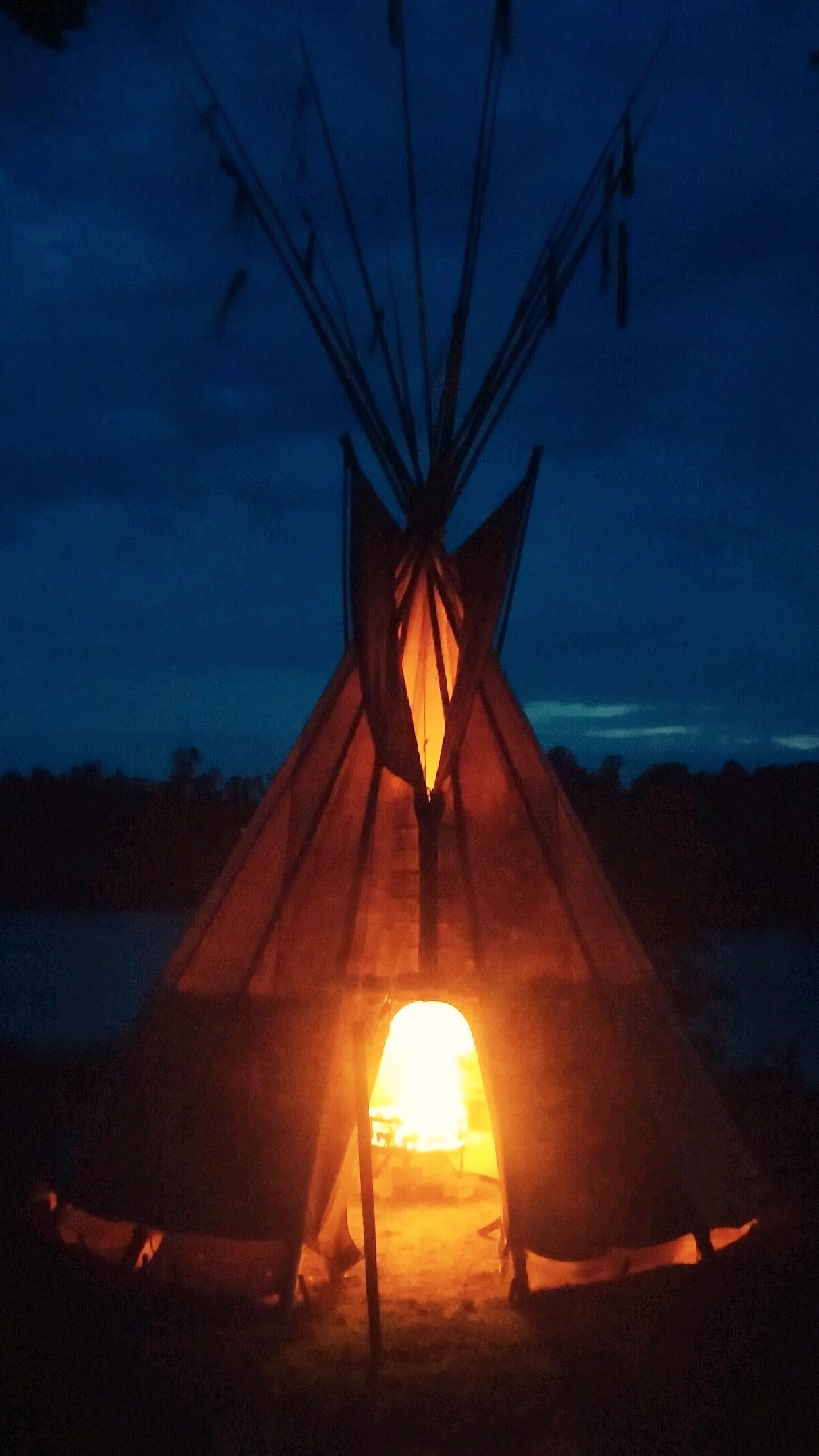Shannon: We live on the river just out of Chippewa Falls and we have a teepee. My husband’s uncles got into the rendezvous era and wanted to get a teepee and put it on our land. It’s honestly a landmark at this point. We have fires in it all the time. My husband cuts and peels the trees by hand to put the teepee together.
